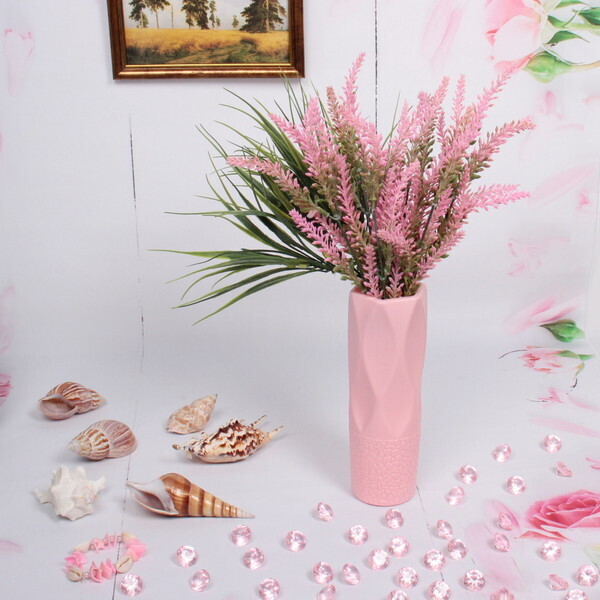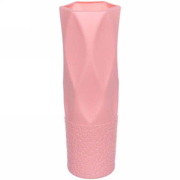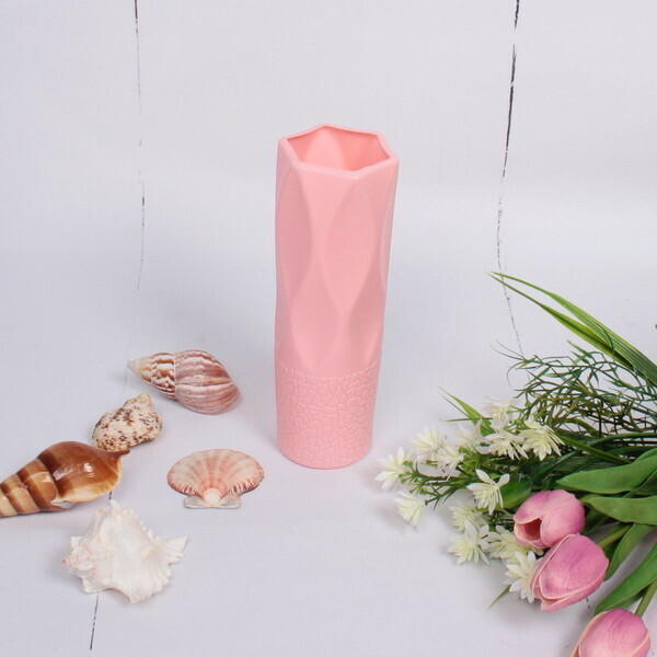 Ваза выполнена из качественного пластика, что гарантирует её долговечность. Розовый цвет и текстурированный дизайн делают её универсальным элементом декора, который будет гармонично смотреться в любом интерьере. Размеры вазы составляют 20 см в высоту и 6 см в диаметре, что позволяет использовать её как для одиночных цветов, так и для небольших букетов.