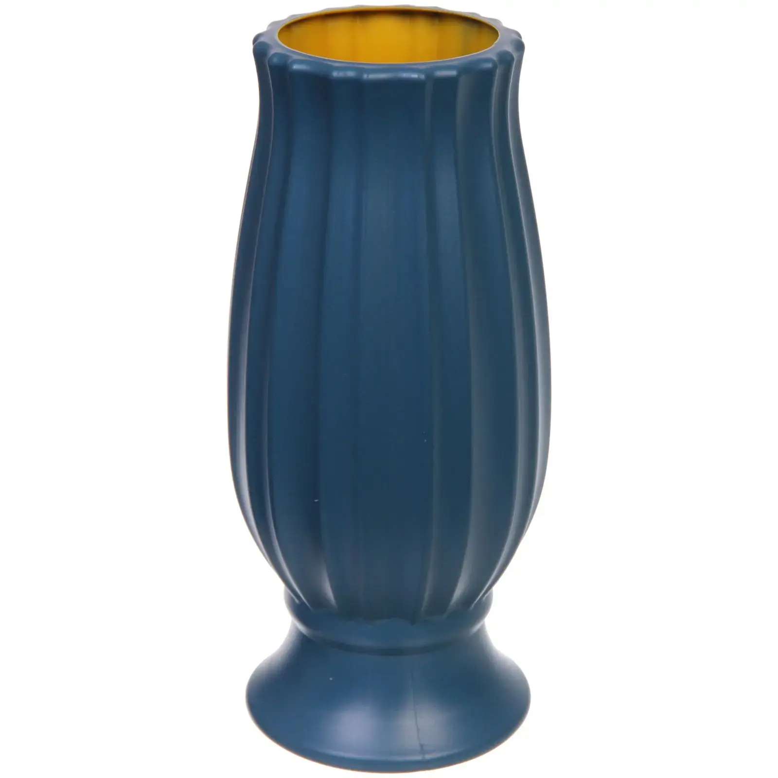 Изготовленная из долговечного пластика, она устойчива к повреждениям и легко моется. Внутренняя поверхность с глянцевым покрытием обеспечивает дополнительную защиту от влаги и грязи, а вертикальные рельефные линии добавляют текстуру и стиль. Широкое основание гарантирует устойчивость, даже если внутри расположены тяжелые цветочные композиции.