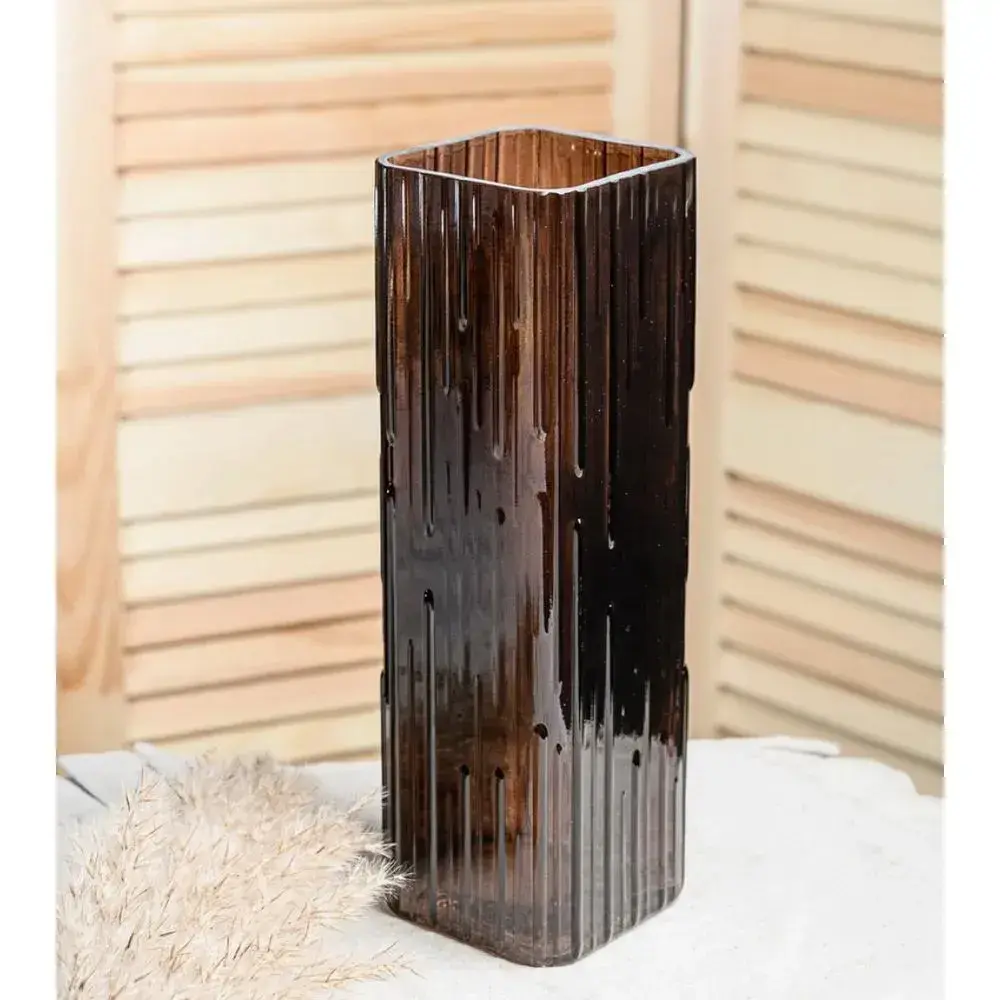 Ваза декоративная "Квадро" квадратная 10.5х10.5х35 см, цвет браун, фактура под дерево