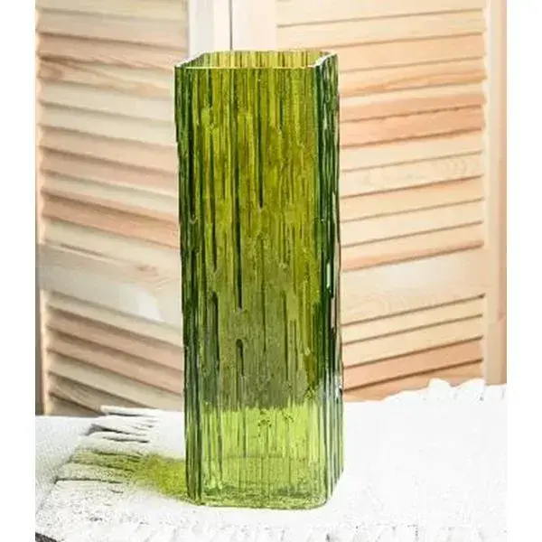 Ваза стеклянная стильная интерьерная, 86х86х255 мм, оливковый, малая серия