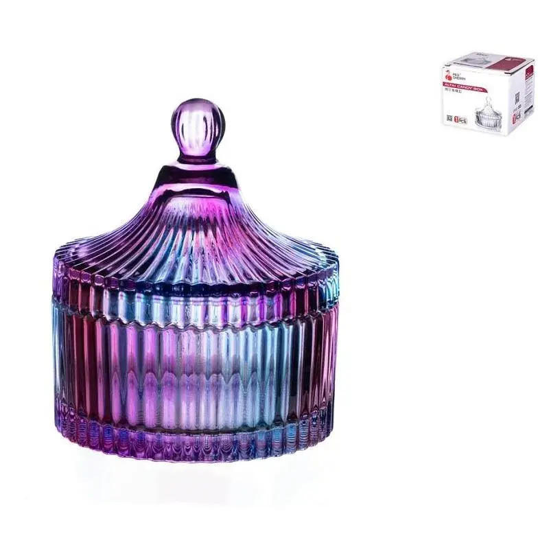 Ваза сервировочная с крышкой 10.8см, стеклянная, градиент фиолетовый/голубой