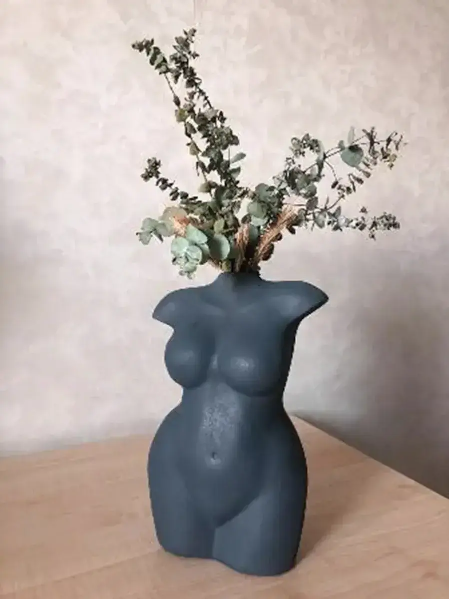 Эта ваза-статуэтка в форме женского торса — не просто предмет декора, а выразительный акцент в любом помещении. Изготовленная из гипса с матовой графитовой поверхностью, она гармонично впишется в современный интерьер и подчеркнет утончённый вкус владельца.