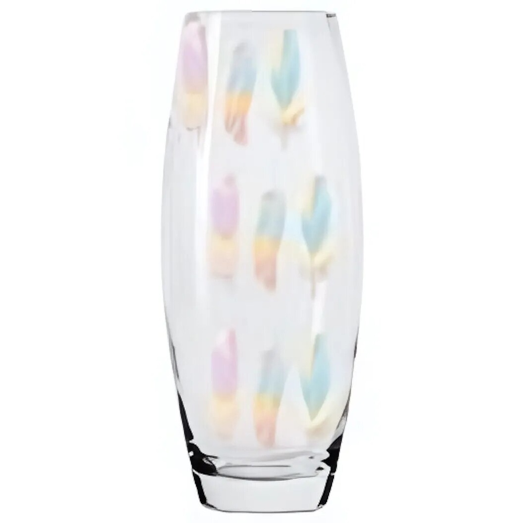 - Изысканное оформление: Боковая поверхность украшена вертикальным рисунком в виде пёрышек, выполненным в пастельных тонах. Этот узор добавляет вазе визуальный объём и динамику, не перегружая общий вид.