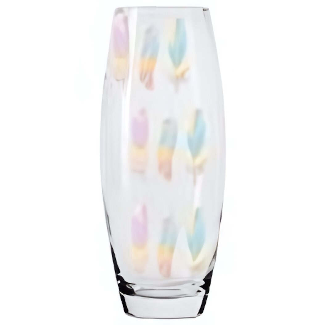 Эта стеклянная ваза станет изысканным украшением любого помещения. Её прозрачные стенки и нежный рисунок создают ощущение лёгкости и воздушности, идеально вписываясь в современный или классический стиль. Ваза готова подчеркнуть красоту ваших цветов или стать самостоятельным декоративным элементом на полке, столе или комоде.