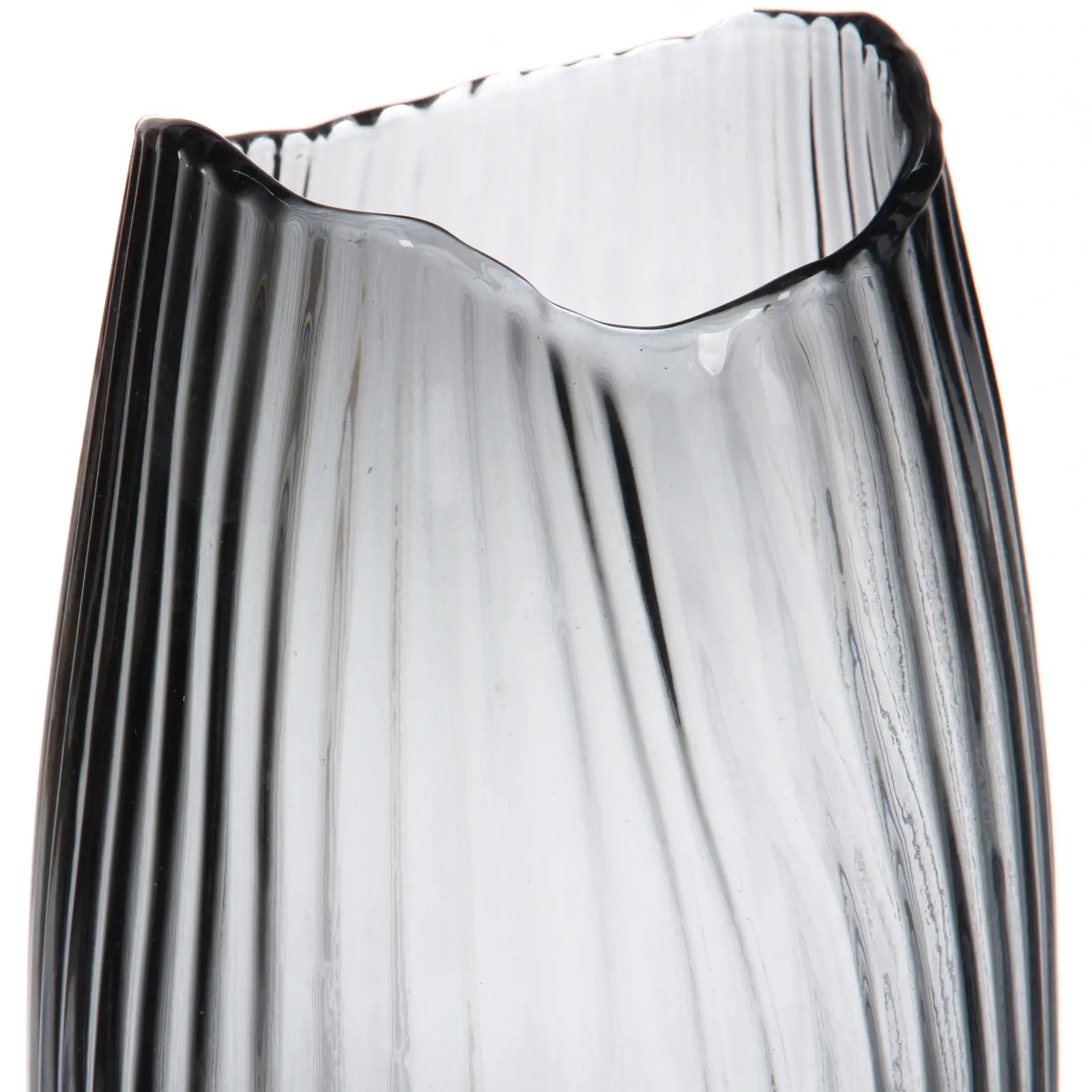 Это стильное изделие принесет в ваш дом уют и гармонию. Стеклянная ваза «GREY GLASS» идеально подходит для оформления интерьера или создания красивых композиции из цветов. Обладает элегантной формой с плавным сужением и волнистым краем, что добавляет изящества. Сделана из прочного стекла, обладает высокой прозрачностью и текстурой с вертикальными рифлеными полосами.