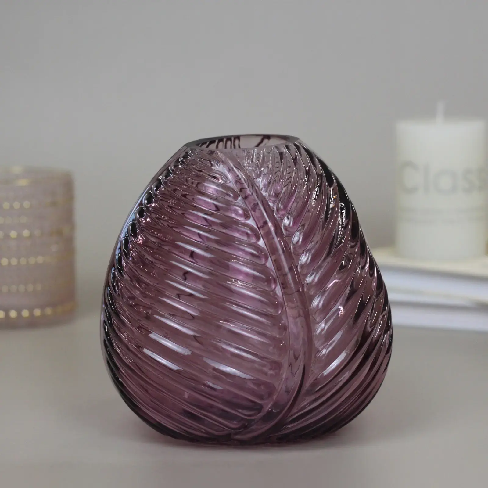 Стеклянная ваза "Луана" размером 11x12 см — это гармоничное сочетание красоты и практичности. Полупрозрачный оттенок розово-фиолетового цвета и утончённый рельеф в виде листа с прожилками придают предмету особое очарование и делают его выразительной деталью в любом помещении.