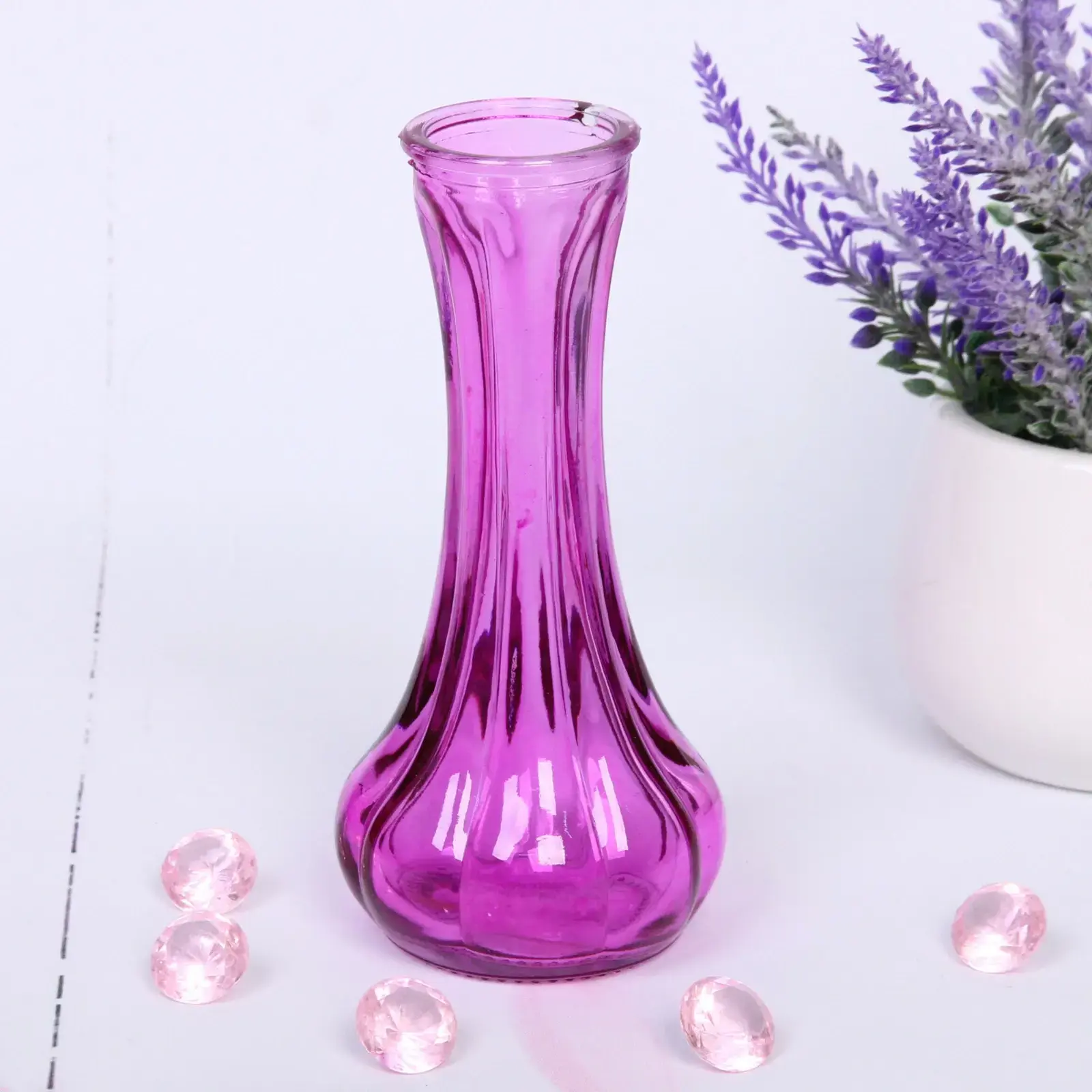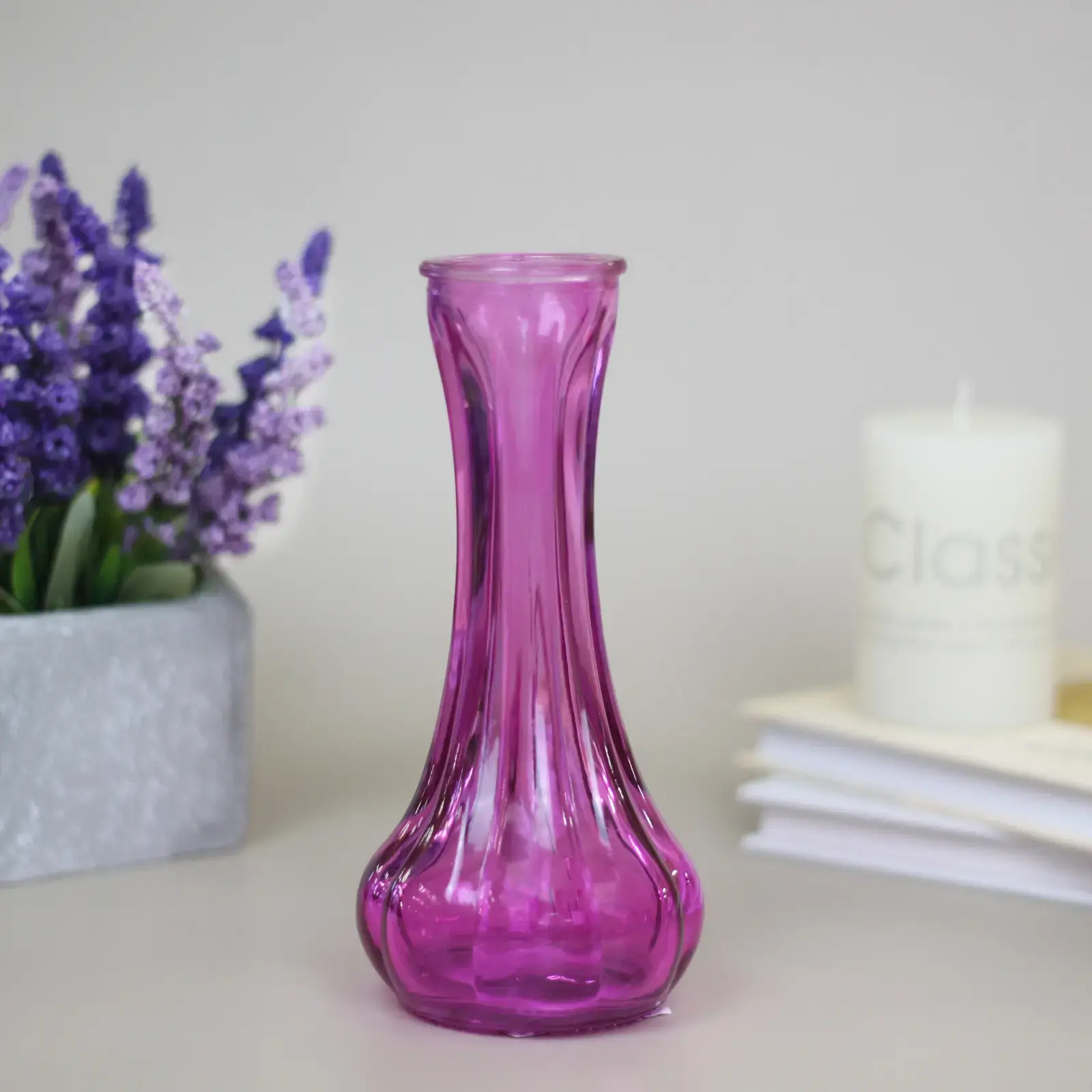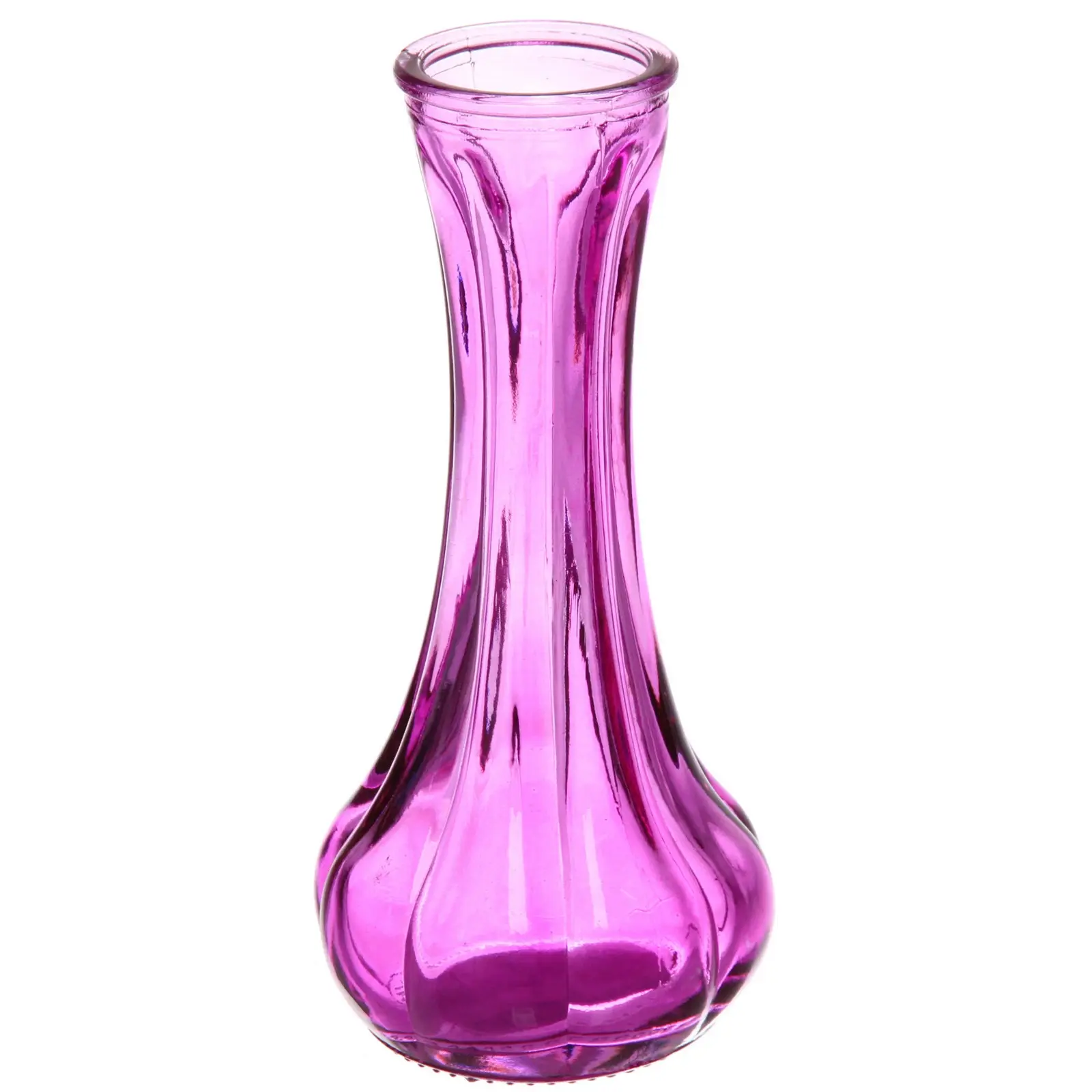 Ваза стеклянная «Муза» 4*16см фуксия, элегантный декор, вертикальные рельефы, идеальная для цветов