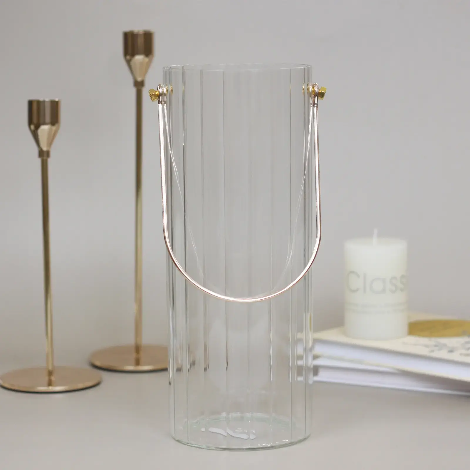 Диаметр 10 см и высота 25 см позволяют создавать как компактные букеты, так и более пышные композиции. Высококачественное прозрачное стекло не мутнеет со временем и легко очищается. Металлическая ручка закреплена надёжно, что делает вазу не только декоративной, но и функциональной.
