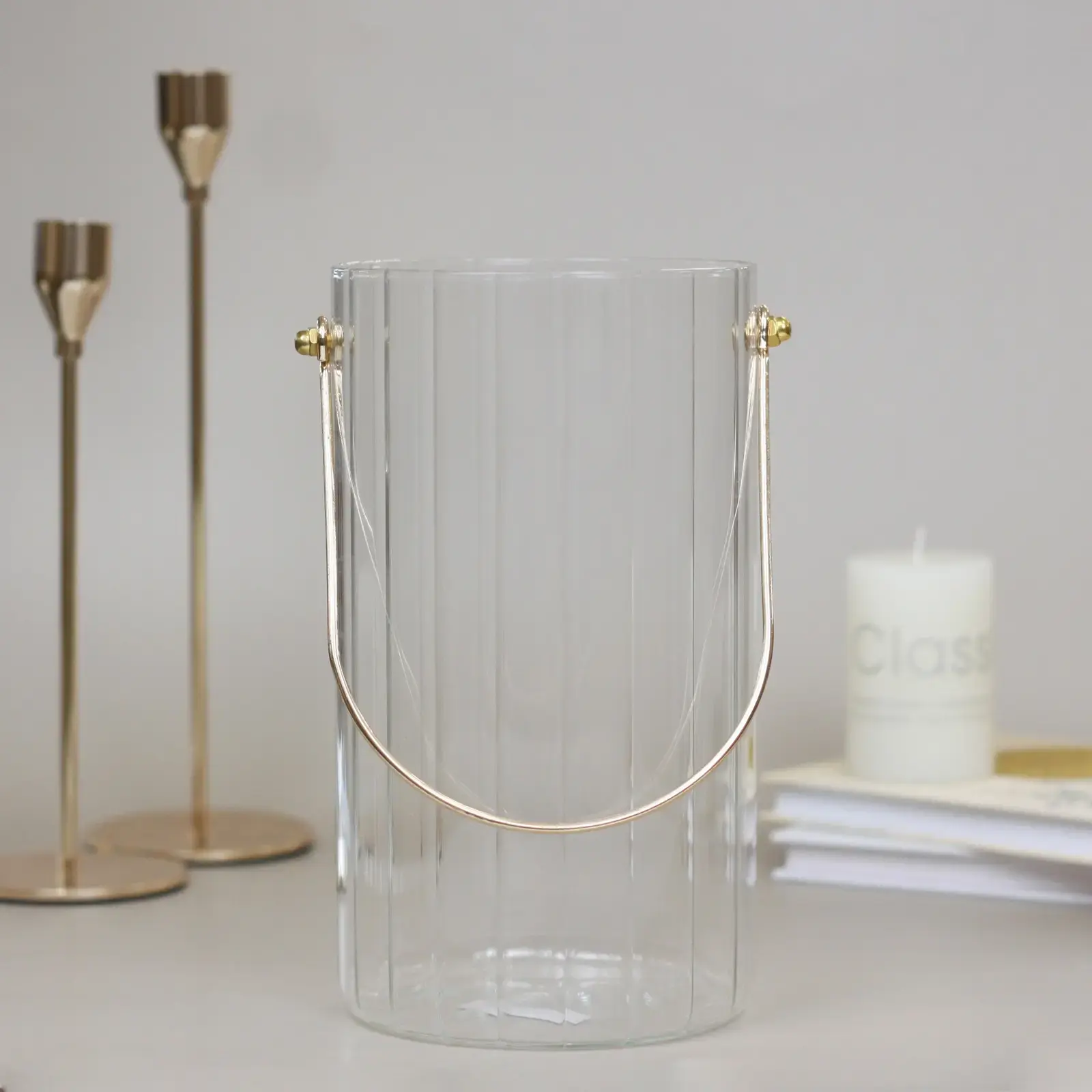 Ваза изготовлена из качественного стекла, что обеспечивает ее долговечность и надежность. Прозрачный цвет позволяет ей гармонично вписываться в любой интерьер, а золотистая ручка добавляет изюминку и делает вазу более привлекательной. Благодаря рифленой поверхности, ваза выглядит стильно и современно, а ее цилиндрическая форма позволяет удобно размещать цветы.