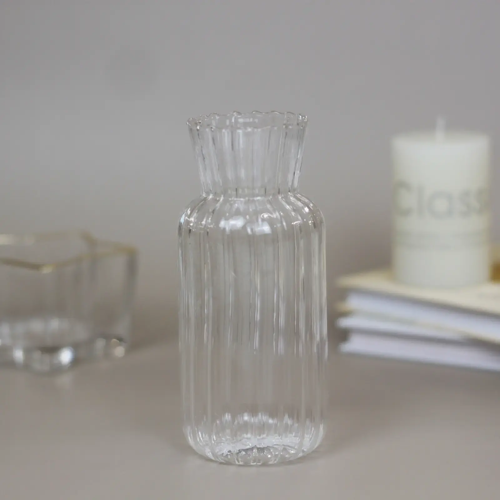 Ваза стеклянная "Прованс" 6x14см, прозрачная, рифлёные грани, стиль для интерьера