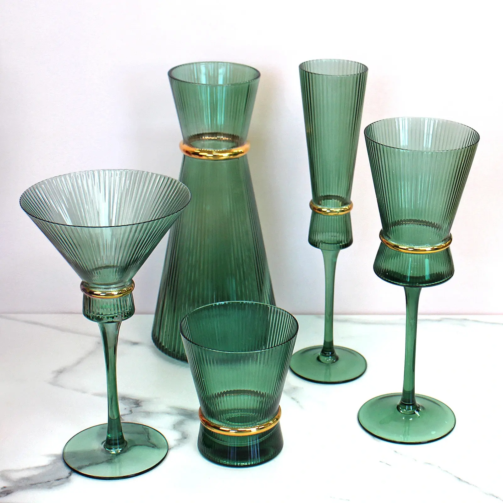 - Гармоничное сочетание зелёного стекла и золотистого кольца