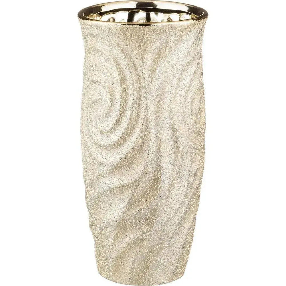 Декоративная ваза 'Зигзаг' станет идеальным решением для тех, кто ценит элегантность и современный дизайн. Благородный оттенок золотого шампань и рельефный узор создают неповторимую текстуру, которая привлекает взгляды.
