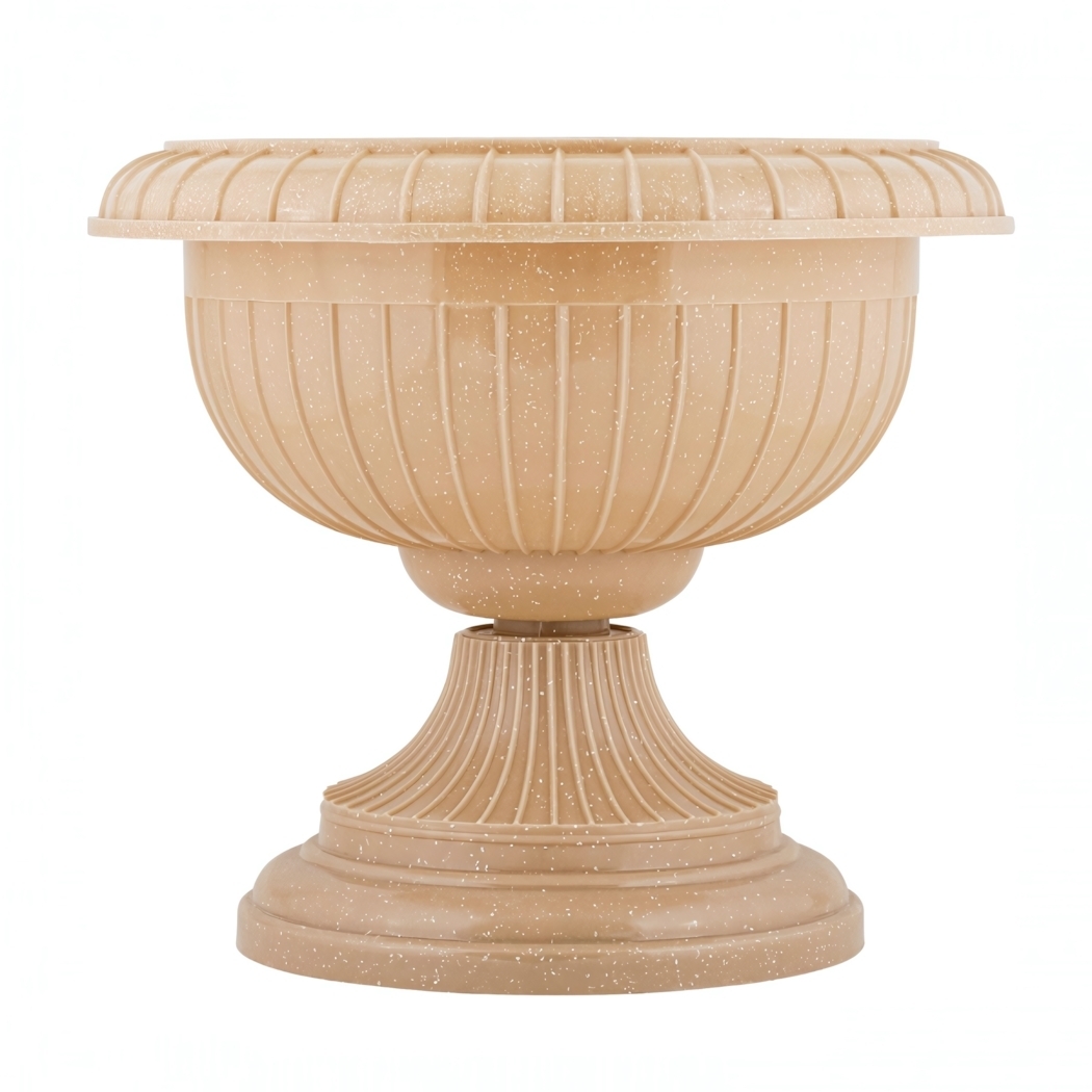 Вазон имеет сборную конструкцию, состоящую из чаши и ножки, что облегчает его транспортировку и установку. Он идеально подходит для использования как в помещении, так и на открытом воздухе. Если вы планируете разместить его на улице, просто прорежьте отверстие в дне чаши для стока дождевой влаги, и ваш вазон будет готов к использованию в любых условиях.