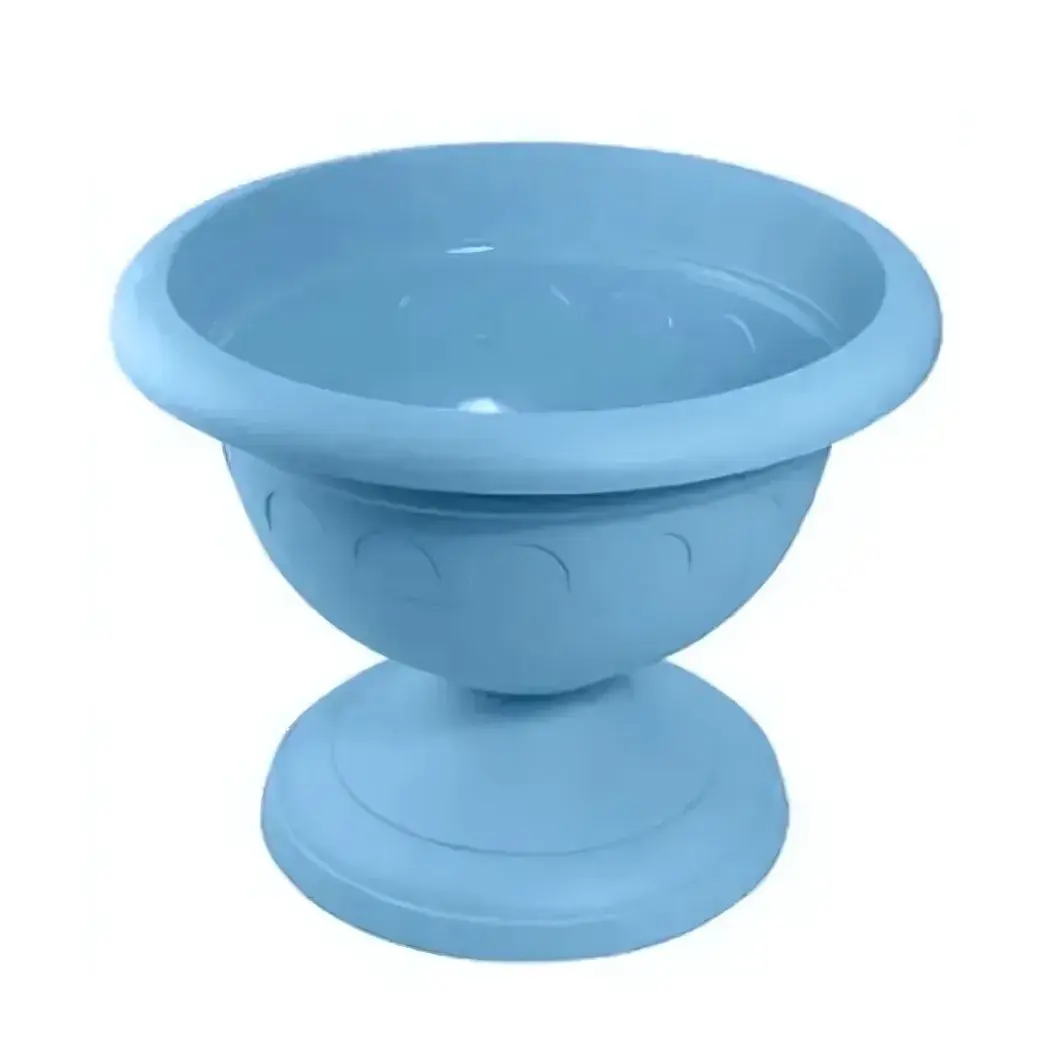 Вазон выполнен из качественного пластика, который устойчив к внешним воздействиям. Светло-голубой цвет и гладкая поверхность с рельефным узором придают вазону стильный вид. Размеры вазона делают его универсальным для различных растений, а также позволяют использовать его в любых интерьерах.