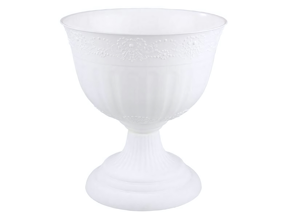 Обеспечьте своему интерьеру уют и свежесть с помощью этого белого пластикового вазона «Венеция». Его классический дизайн и стильный рельефный узор добавят изящества любому пространству, а объем в 10 литров идеально подходит для комнатных растений или декоративных цветов.