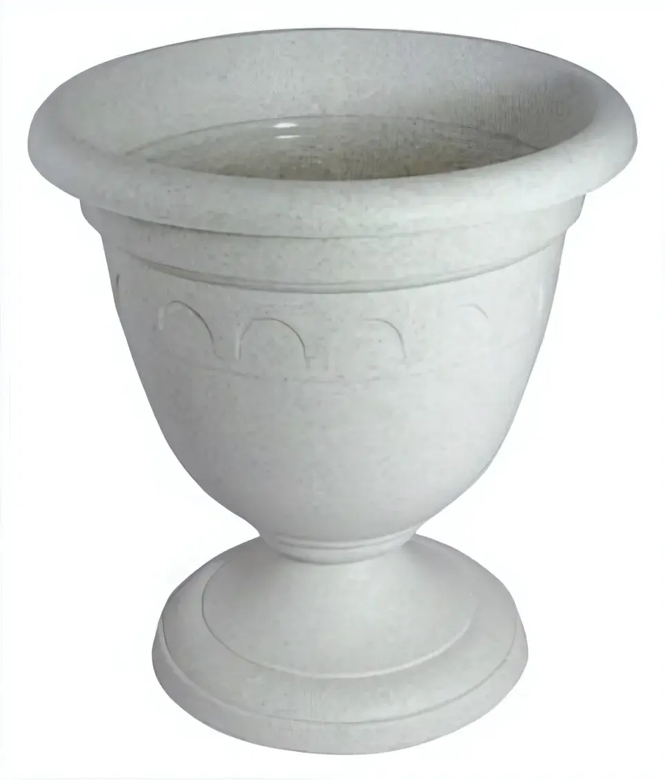 Вазон выполнен из качественного пластика, что делает его долговечным и устойчивым к внешним воздействиям. Его гладкая поверхность легко очищается от загрязнений, а декоративные элементы придают ему уникальный вид. Размеры вазона позволяют использовать его как в домашних условиях, так и на даче или в саду.