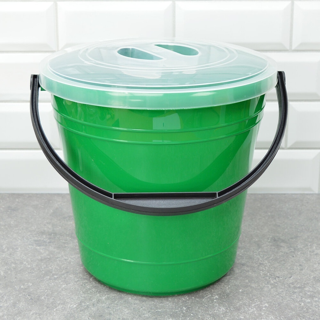 Круглая форма с укрепленными стенками обеспечивает устойчивость, а компактные размеры позволяют хранить ведро даже в ограниченном пространстве. Зеленый цвет гармонично впишется в интерьер подсобных помещений или садовый участок. Особенностью конструкции стала усиленная ручка с прочным креплением — она выдерживает полную загрузку ведра без деформации.