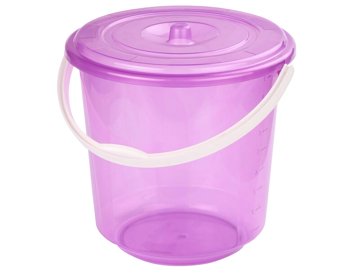 Объем — 10 литров, цвет — розовый, выполнено из прочного пластика, оснащено удобной ручкой и крышкой с выступом для лёгкого открывания. Идеально подходит для домашнего использования, уборки, хранения и транспортировки жидкостей или сухих товаров.
