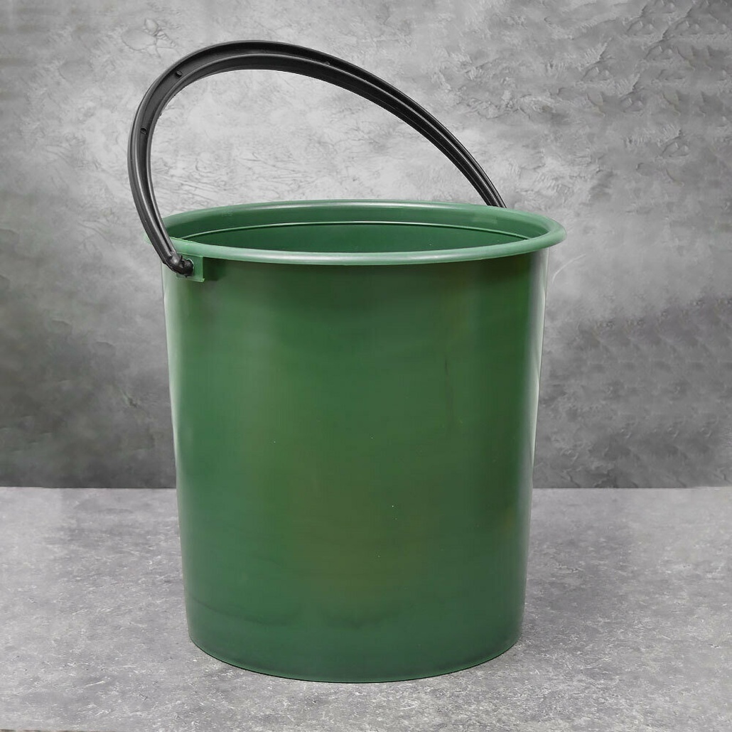 Ведро пластиковое 12л, гладкое, зеленого цвета, с ручкой для хозяйственных задач