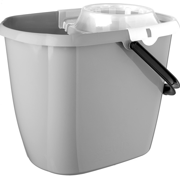 Ведро выполнено из качественного пластика серого цвета, что делает его универсальным для любого интерьера. Объем ведра составляет 13 литров, что позволяет использовать его для различных задач. Прямоугольная форма с закругленными краями обеспечивает удобство при использовании и хранении.