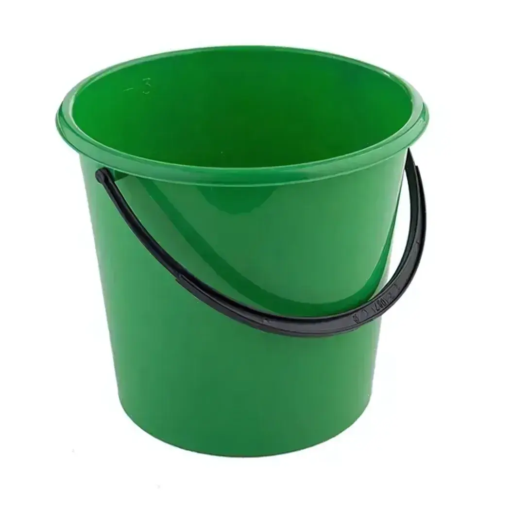 Ведро пластиковое 7л, зелёное с чёрной ручкой, для дома и уборки