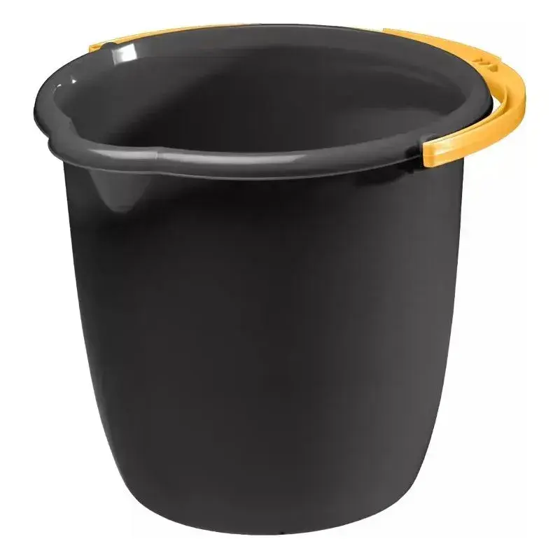 Ведро изготовлено из качественного пластика, рассчитано на объем 8 литров. Модель с плавно расширяющимся корпусом легко моется и быстро сохнет. Отличное дополнение для помещений любого назначения, когда требуется простота и долговечность. Цвет: темно-серый, ручка: желтая.
