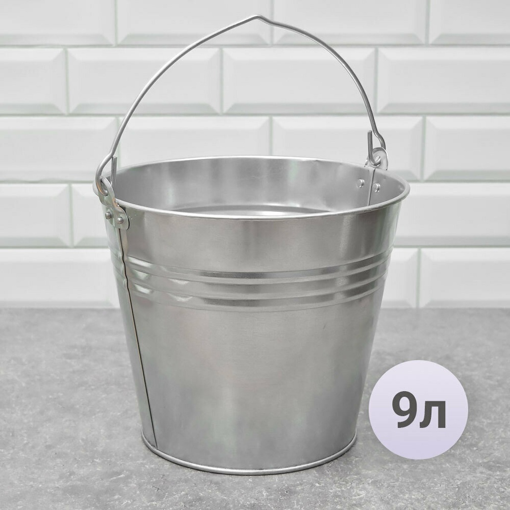 Ведро оцинкованное 9л, металлическое, ребра жесткости, ручка из стали
