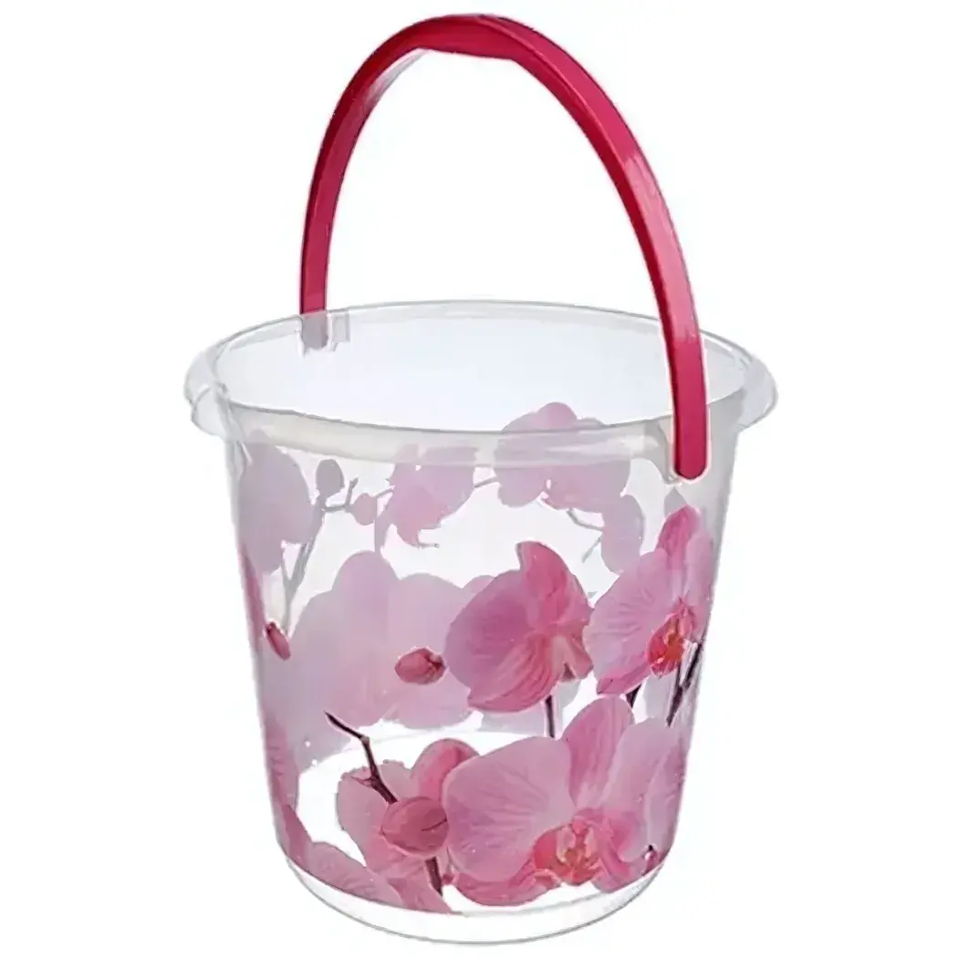 Ведро пластиковое "ДЕКО" 5л с цветочным рисунком, цвет орхидея, 22х23 см