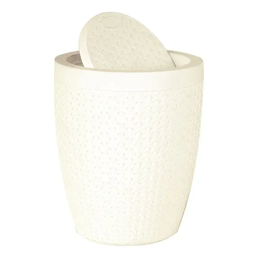 Ведро для мусора 10л с крышкой, плетеная текстура, цвет слоновая кость