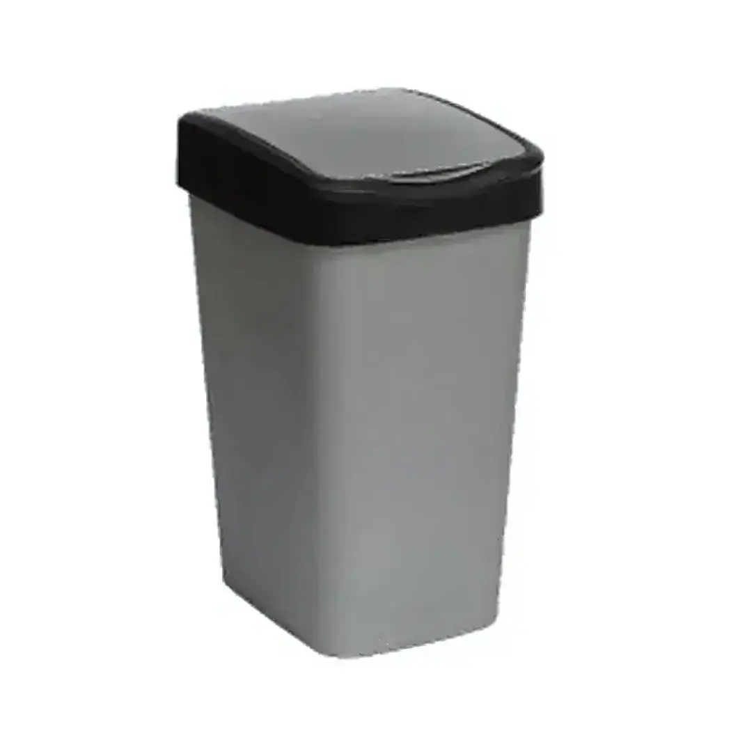 Ведро для мусора "Tandem" 10л с герметичной крышкой, цвет в ассортименте (серый металлик/черный)