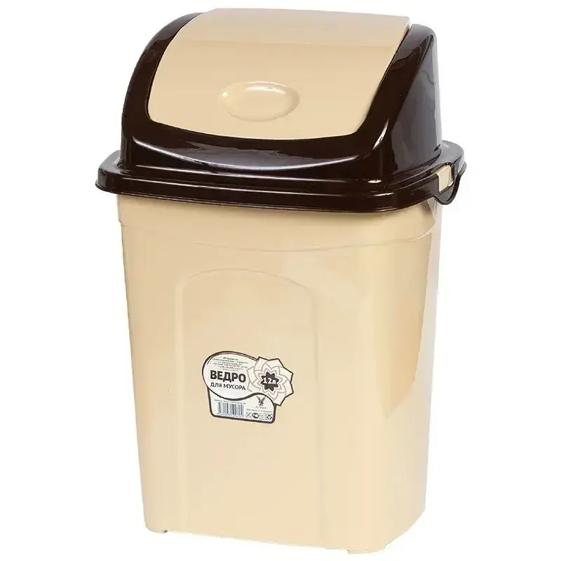 Ведро для мусора с крышкой 12л, пластик, бежевый/коричневый, герметичное