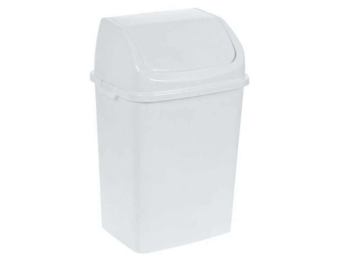 Прямоугольная форма с закругленными углами обеспечивает удобство при использовании стандартных мешков для мусора. Встроенный вырез на крышке делает процесс открытия максимально комфортным, а надежная конструкция исключает случайное опрокидывание.