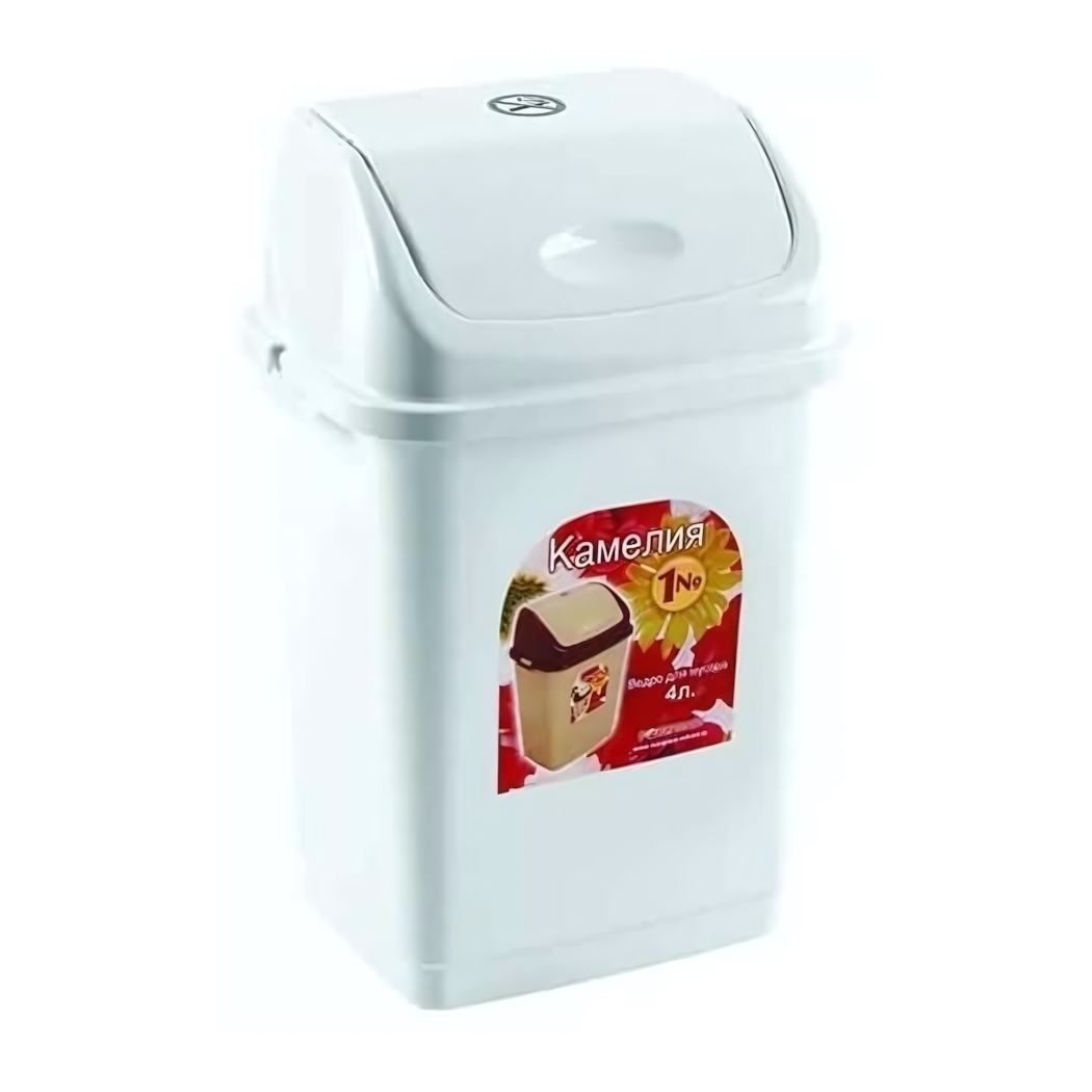 Ведро для мусора «Камелия» с плавающей крышкой, 8 л, белое, пластик, прямоугольное