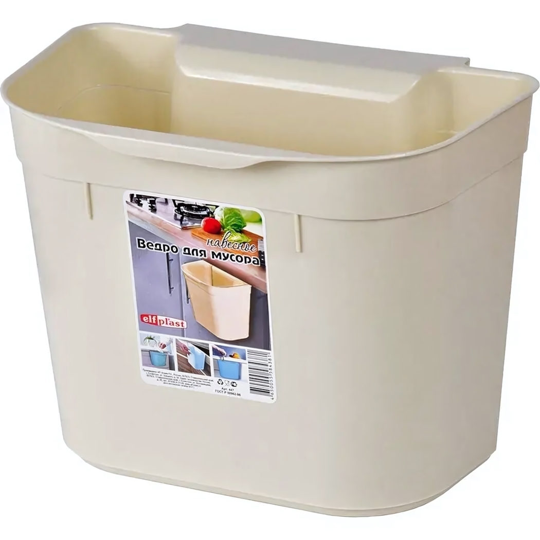 Ведро для мусора навесное пластиковое, квадратное с округлыми углами, бежевый