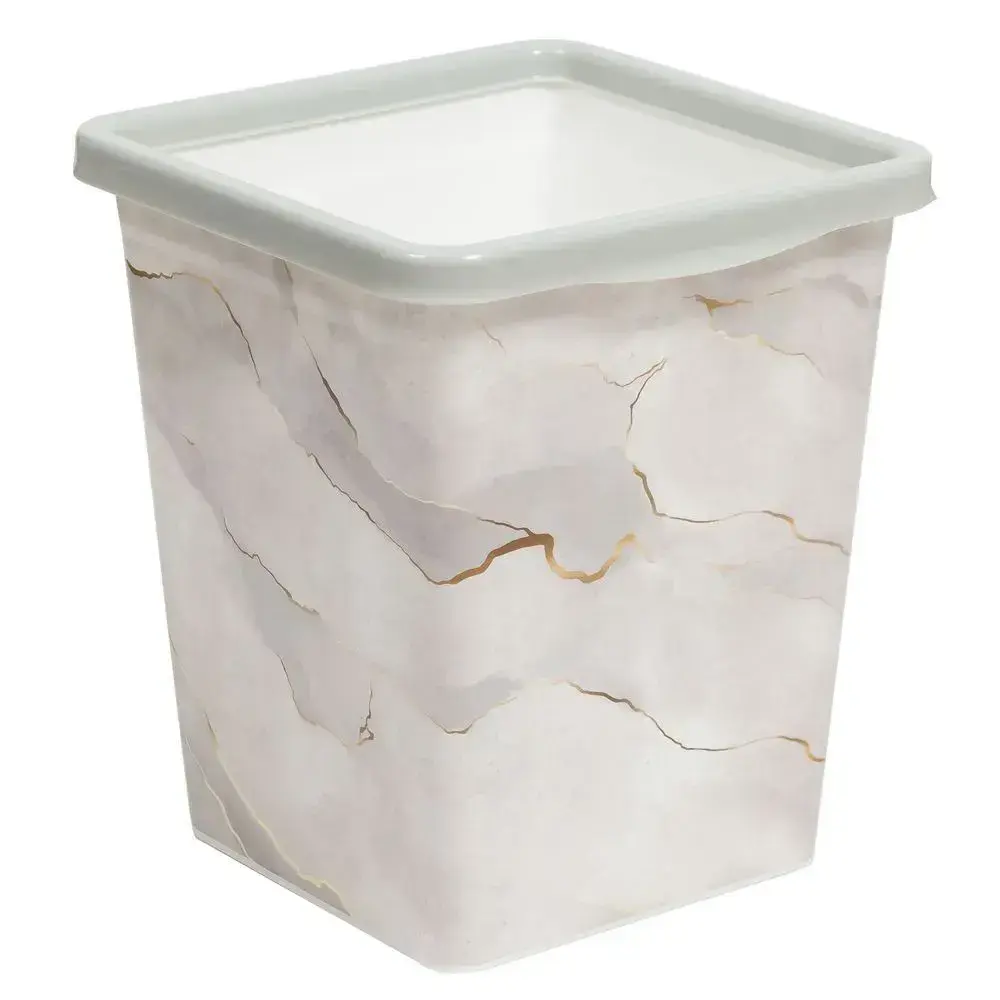 Ведро для мусора с фиксатором, 8,5 л, квадратное, декор «Белый мрамор» — Violet