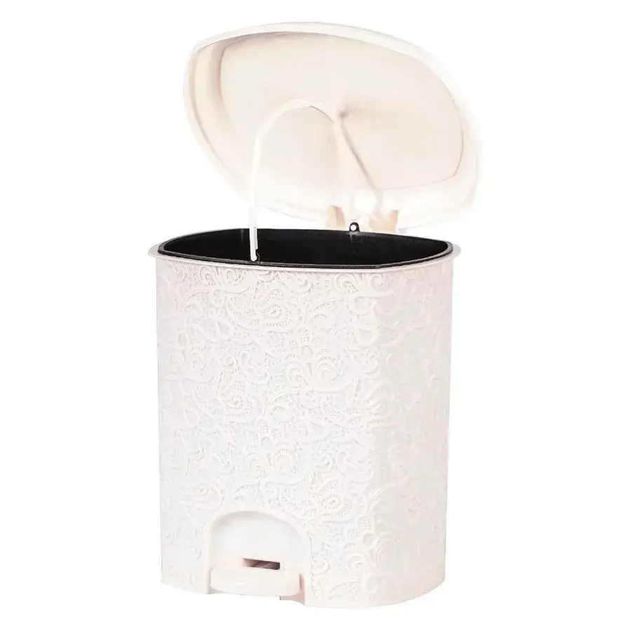 Ведро для мусора с педалью, 11л, пластик, ажурный узор, цвет слоновая кость