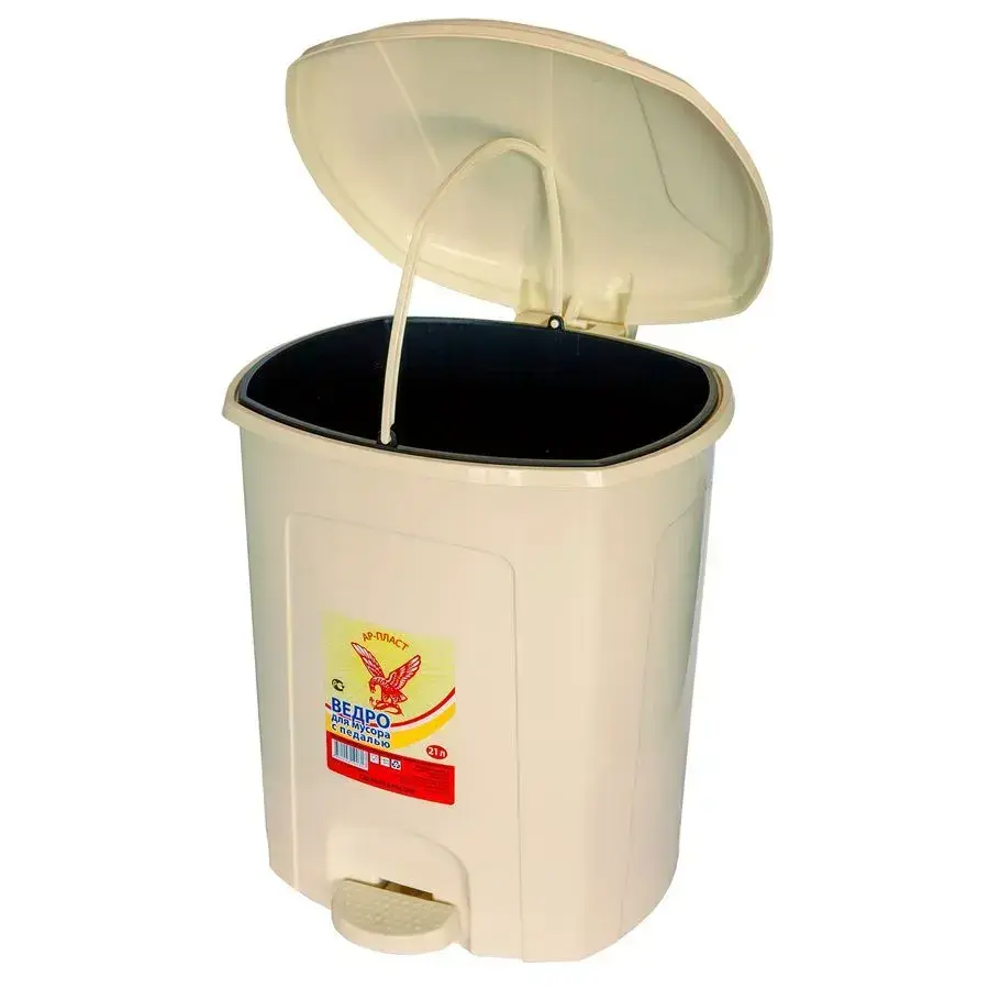 Ведро с педалью 21л, комплект из 4 шт, пластик, усиленная конструкция, для дома и офиса