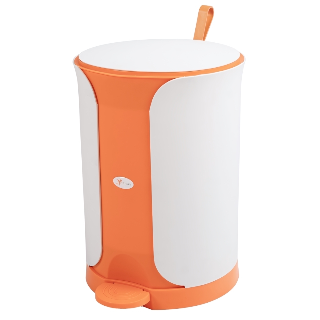 Ведро выполнено из качественного пластика, что обеспечивает его долговечность и легкость в уходе. Оранжевый цвет добавляет яркости и стиля в интерьер. Размеры ведра не указаны, но его цилиндрическая форма и гладкая поверхность делают его удобным для размещения в любом уголке вашего дома.