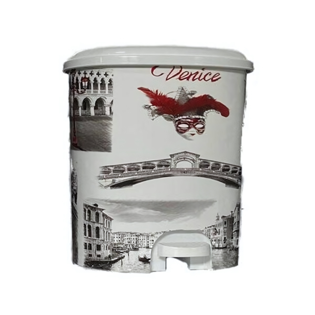 Ведро для мусора с педалью 'Венеция' — это идеальное решение для вашего дома, которое сочетает в себе стиль и функциональность. Благодаря своему белому цвету и уникальному декору, вдохновленному архитектурой Венеции, оно станет не только практичным, но и эстетически привлекательным элементом вашего интерьера.