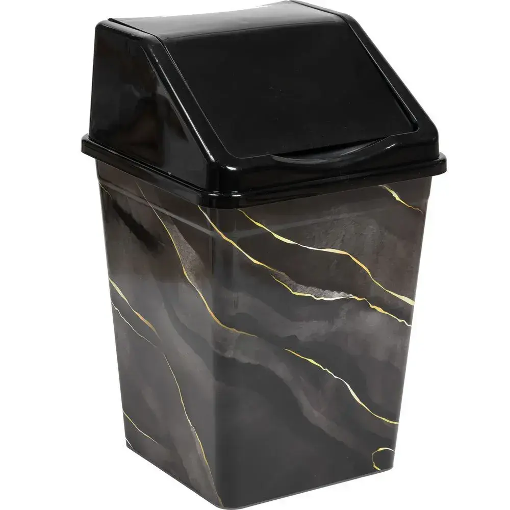 Ведро для мусора с крышкой "Violet" 10л, квадратное, черный мрамор с золотым декором