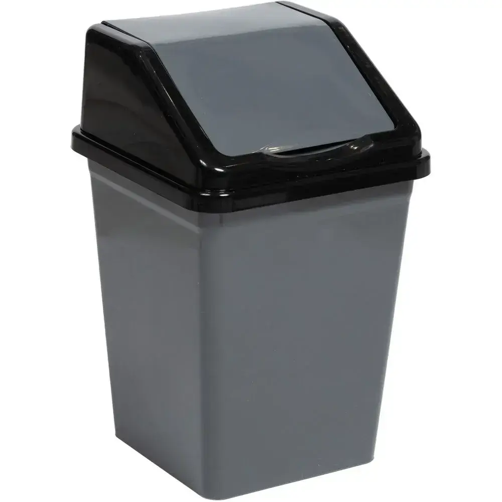 Оцените удобство использования мусорного ведра, которое создано для комфорта и чистоты в вашем доме. Благодаря подвижной крышке с ручкой вы легко открываете и закрываете контейнер, не касаясь мусора напрямую. Оно отлично впишется в интерьер кухни, ванной или офиса за счёт лаконичного квадратного дизайна и универсального сочетания серого корпуса с чёрной крышкой.