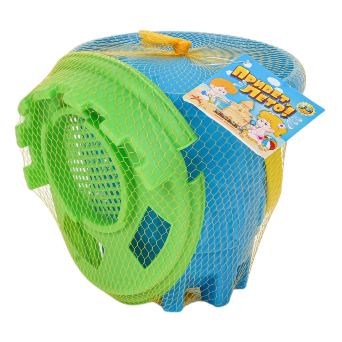 Обратите внимание: товар выполнен в формате «разноцветный принт», что обеспечивает яркость и привлекательность игрушки. Ведро поставляется в сетке, что удобно для хранения и транспортировки после игры в песочнице.