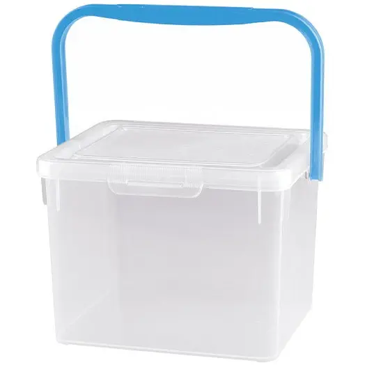 Контейнер идеально подходит для хранения стирального порошка, но также может использоваться для других бытовых нужд. Синяя ручка обеспечивает удобство переноски, а плоская крышка надежно закрывает контейнер, предотвращая попадание влаги и загрязнений. Это делает его отличным выбором для дома, где важна организация пространства.