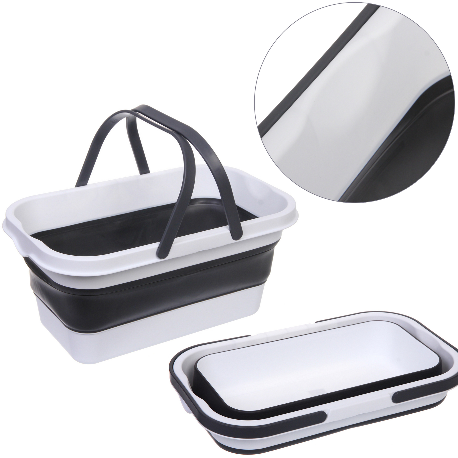 Ведро складное 16л, силикон/пластик, белое/черное, для уборки и стирки