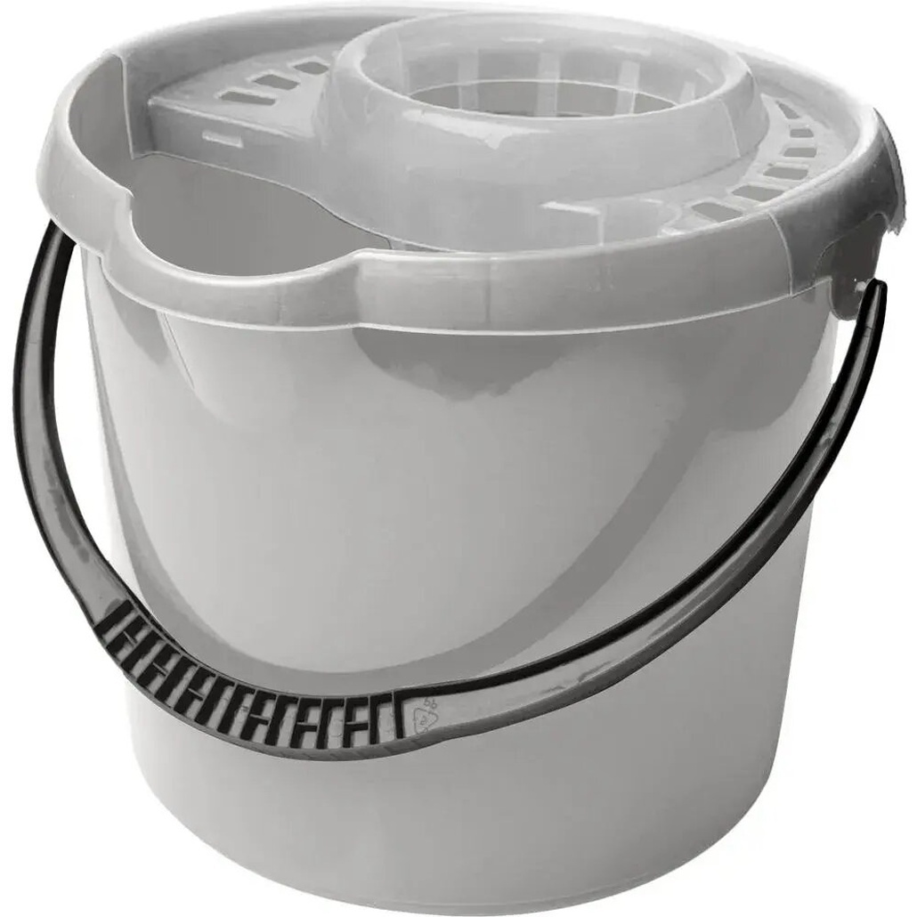 Ведро пластиковое с отжимом для швабры, 9 л, серое, удобная ручка
