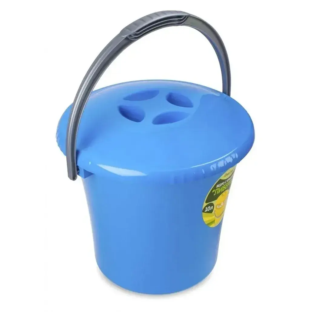 Ведро пластиковое с крышкой, 10 л, голубое, герметичное, для хранения и уборки