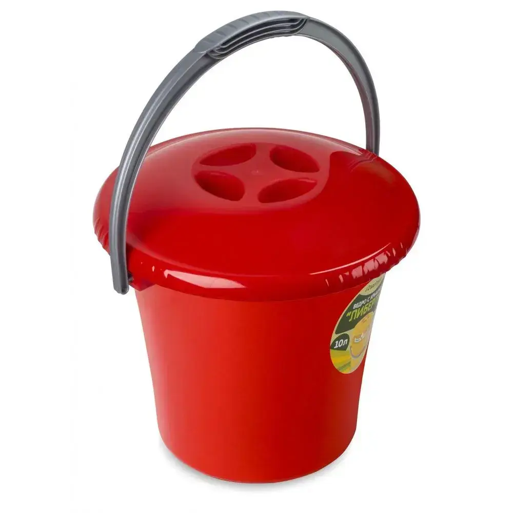 Ведро 'Либерти' 10л с крышкой, красное, пластик, комплект 12 шт