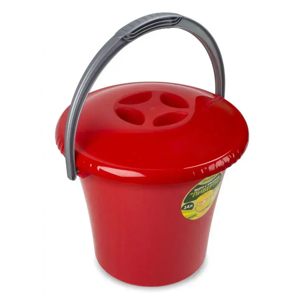 Ведро пластиковое 14л с крышкой, комплект 11 шт, красное, для уборки и хранения