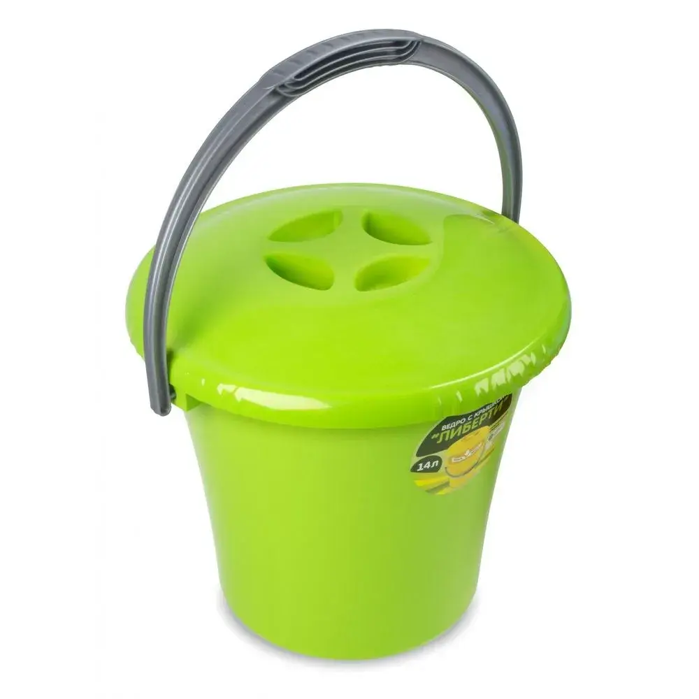 Ведро с крышкой 14л, пластик, салатовое, комплект из 11 штук