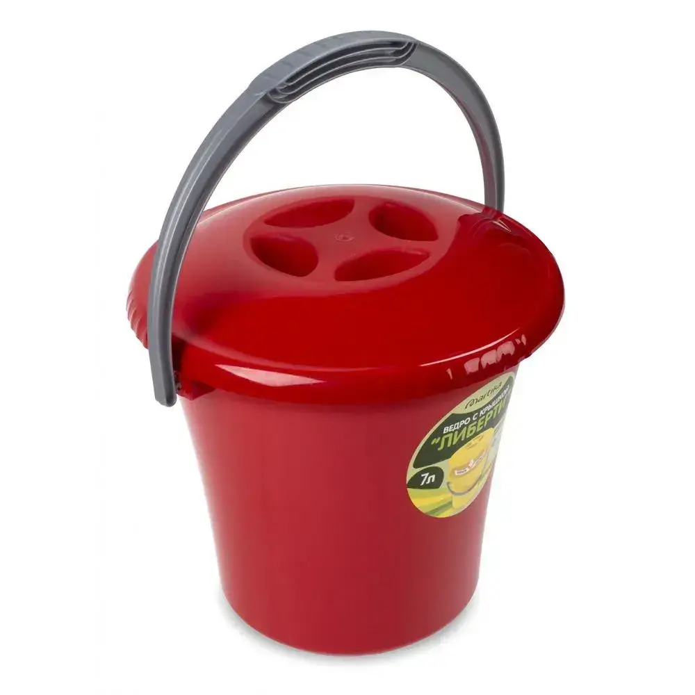 Ведро с крышкой «Либерти» 7л, пластик, красное, набор 16 штук для дома и бизнеса